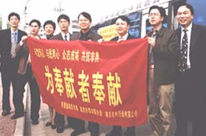 2003年4月26日,本公司與共青團(tuán)南京市委、南京市青年聯(lián)合會組織部分青年代表帶著全市青年的心愿,向廣大奮斗在抗非典一線的醫(yī)務(wù)工作者送去錦旗和慰問品,表達(dá)對奉獻(xiàn)者真摯的祝福。在江蘇省人民醫(yī)院,當(dāng)院領(lǐng)導(dǎo)和醫(yī)護(hù)人員從團(tuán)市委書記許宏和圣和藥業(yè)董事長王勇手中接過錦旗和慰問品時深為感動。他們表示有全市人民的大力支持,一定能戰(zhàn)勝“非典”惡魔,奪取抗非典戰(zhàn)斗的勝利。許宏書記和王勇董事長對奮戰(zhàn)在抗非典一線的醫(yī)務(wù)人員所表現(xiàn)出的崇高精神表示欽佩,對他們所做的工作表示感謝,并囑咐他們一定要保重身體。