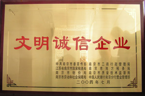 日前,我公司收到了由南京市市委宣傳部等八部門(mén)聯(lián)合授予的“文明誠(chéng)信企業(yè)”獎(jiǎng)牌。
