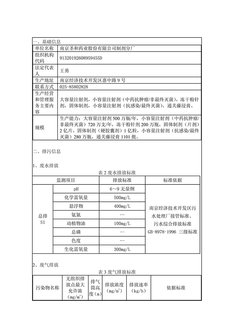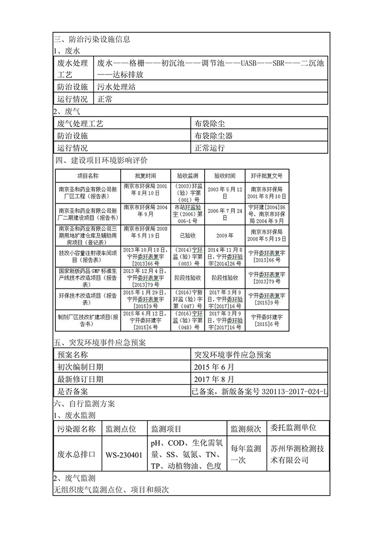 南京圣和藥業(yè)股份有限公司制劑分廠環(huán)保信息公開