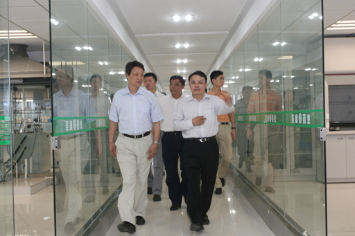 (圖為:王勇董事長陪同陳宗興副主席參觀我公司研究院)
