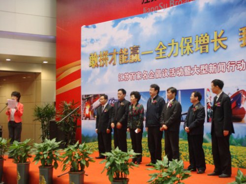 2009年4月13日,由省國資委與省工商聯(lián)、江蘇廣電總臺聯(lián)合發(fā)起的百家名企“樹信心、保增長、促發(fā)展”倡議活動暨江蘇廣電總臺大型新聞行動《敢拼才能贏——全力保增長我們在行動》啟動儀式在江蘇廣電總臺新大樓一樓大廳舉行。省委常委、宣傳部長楊新力出席倡議活動并為啟動儀式揭幕,省委宣傳部部務委員劉德海、省工商聯(lián)副主席姜成林、省廣電局副局長申彭建、省廣電總臺臺長周莉、副臺長戴聽祥等領導同志也同期出席了活動。省廣電總臺主持人代表百家名企宣讀了《倡議書》。我公司作為南京市13個發(fā)起企業(yè)之一,參加了此次啟動儀式,并在倡議書上簽字。