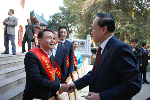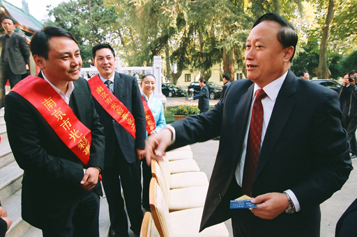 2008年11月21日下午,由中共南京市委統(tǒng)戰(zhàn)部、南京市工商業(yè)聯(lián)合會、南京市光彩事業(yè)促進會共同舉辦的南京市第三屆“光彩事業(yè)之星”表彰大會暨光彩事業(yè)促進會換屆大會在南京市人民政府禮堂隆重舉行,會上,王勇董事長被授予南京市第三屆“光彩事業(yè)之星”榮譽稱號并當選為南京市第三屆光彩事業(yè)促進會理事會副會長。表彰大會前,省委常委、市委書記朱善璐同志親切接見了王勇董事長,并合影留念。
