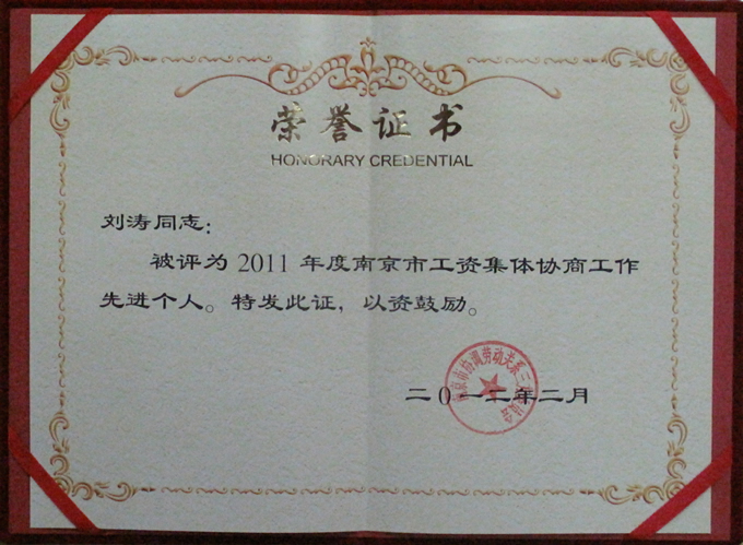 此次評選由南京市社會和勞動保障局、南京市總工會等部門組織,我公司從全市眾多候選企業(yè)中脫穎而出。多年來,王勇董事長高度重視工資集體協(xié)商工作,在集團工會和人力資源部的共同努力下,抓落實,重實效,積極履行對員工的社會責任,完善企業(yè)勞動用工制度,在勞動合同簽訂、社會保險辦理、薪酬管理改革等方面做了大量工作,取得可喜成績。工資集體協(xié)商工作有效保障了員工的合法權益,極大地提高職工工作積極性,達到企業(yè)和職工“雙贏”的目的。(文宣)