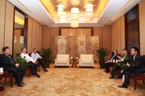 桑國衛(wèi)副委員長、陳竺部長與王勇董事長(右二)等參會代表親切交談