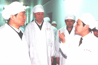 二○○三年“五一”節(jié)當(dāng)天,省委書記李源潮在南京市委書記羅志軍的陪同下,上午十點(diǎn)三十分來到我公司新港生產(chǎn)基地了解生產(chǎn)抗”非典“藥物生產(chǎn)情況,看望并慰問奮戰(zhàn)在一線的員工,代表省委、省政府對(duì)本公司員工在勞動(dòng)者的節(jié)日、非常時(shí)期堅(jiān)守崗位,加班加點(diǎn),保證防治非典藥物的生產(chǎn)供應(yīng)表示感謝,并向全省工人階級(jí)和所有勞動(dòng)者致以節(jié)日的問候。