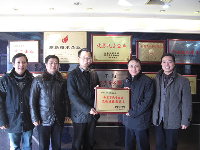 為深入推進(jìn)全市民營企業(yè)文化建設(shè),市工商聯(lián)在全市民營企業(yè)中開展了民營企業(yè)文化建設(shè)示范點(diǎn)創(chuàng)建活動。經(jīng)企業(yè)自愿申報,市、區(qū)工商聯(lián)或商會推薦,市工商聯(lián)深入調(diào)研考察,市工商聯(lián)黨組于近日研究決定,授予我司等110家企業(yè)為“南京市民營企業(yè)文化建設(shè)示范點(diǎn)”。1月9日,南京市委統(tǒng)戰(zhàn)部副部長、市工商聯(lián)黨組書記毛衛(wèi)華一行親自來我司授牌,王勇董事長熱情接待了毛書記一行,并向來賓介紹了公司企業(yè)文化建設(shè)情況。