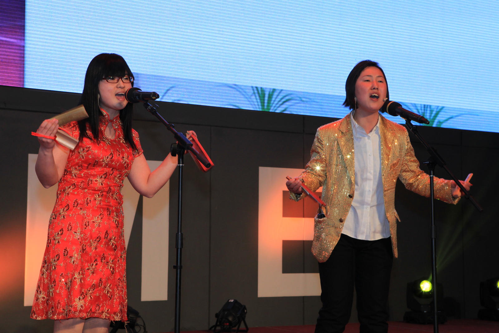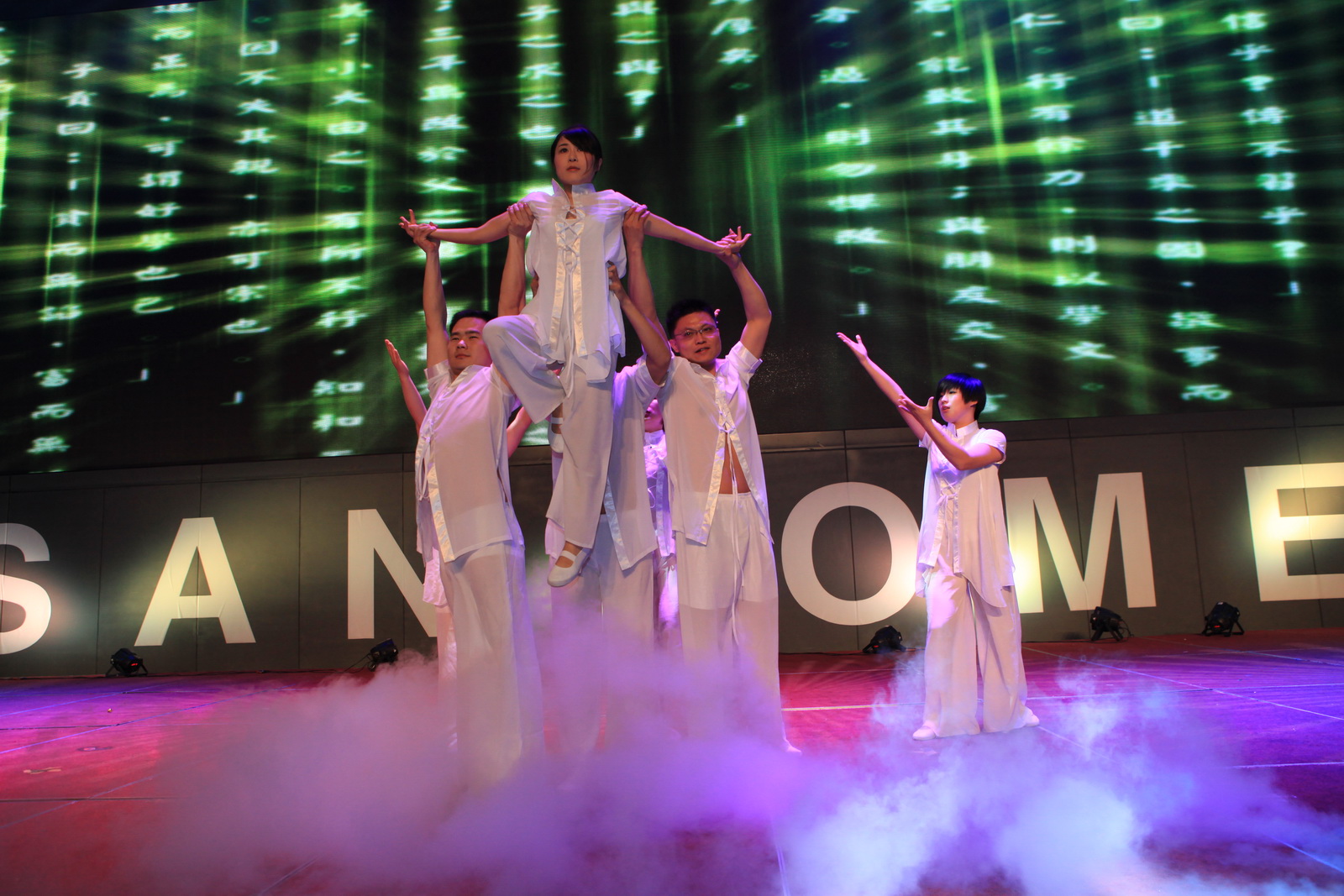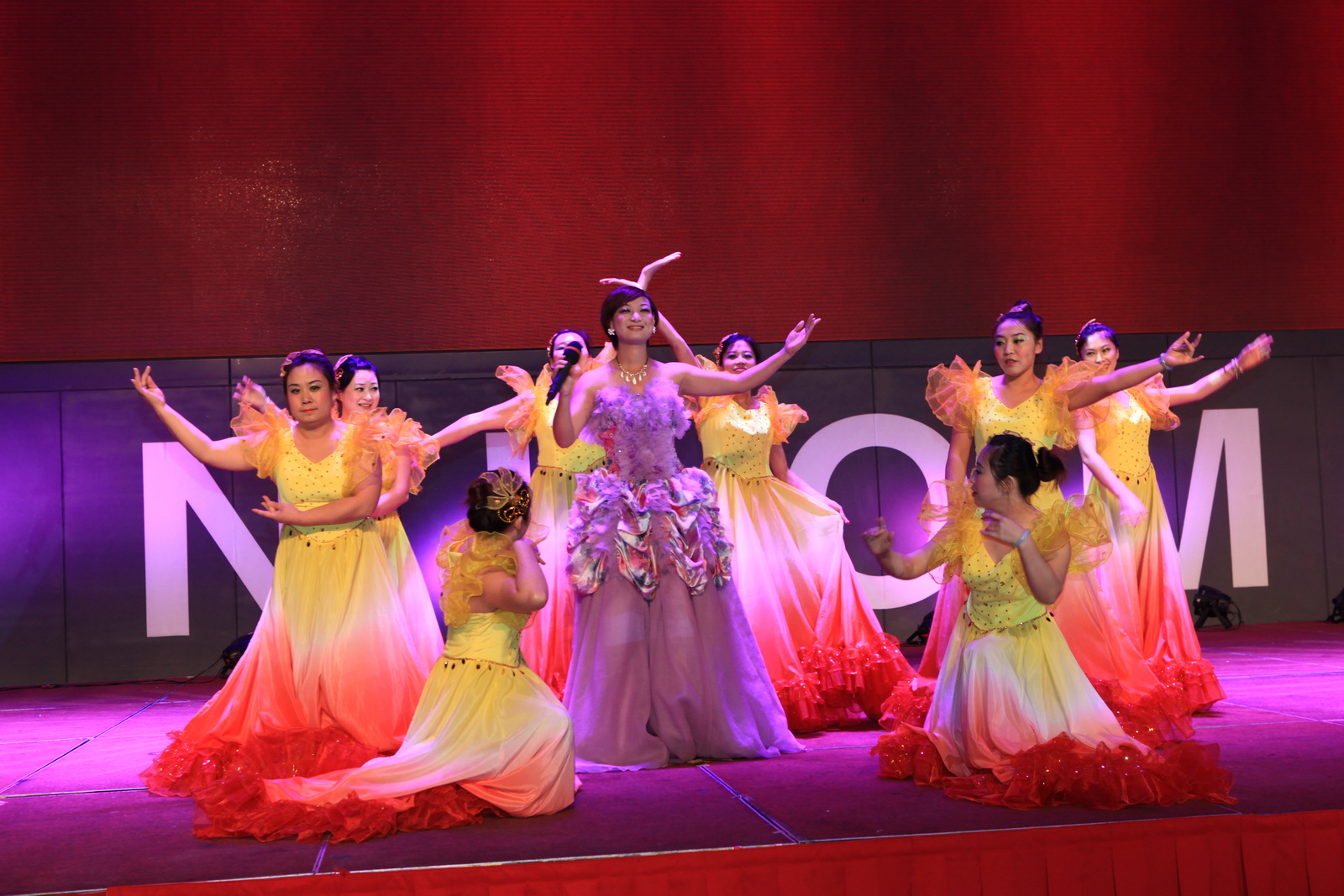 舞蹈《好運來》拉開了演出的序幕,視頻短片《光耀未來》寓意著,“榮光耀,千里之行始今朝,展未來,萬里揚帆再啟航”。由吉遼大區(qū)孫瑤等帶來的歌伴舞《相信》和來自南京德云社的兩位著名相聲演員,給大家?guī)砹瞬灰粯拥穆犛X享受。江蘇大區(qū)的童沅等帶來的舞蹈串燒,展示了圣和員工的活力和朝氣。研發(fā)中心的視頻互動《爸爸去哪兒了》,喚起了大家無限的親情感受。江蘇省歌舞團演員奉上的民歌《越來越好》和《在希望的田野上》,增添了紅紅火火的氣氛。黑龍江大區(qū)的張巍巍、郭強兩人合作的小品《吃面》,給大家?guī)砹瞬簧贅纷印V苿┓謴S三車間任詠秋的歌伴舞《望鄉(xiāng)》,唱出了無盡的鄉(xiāng)情。奇妙的《水晶芭蕾》,給大家?guī)砹瞬灰粯拥挠^賞視覺。云貴大區(qū)的小品《新白蛇傳》中插播的廣告詞,讓圣和人記憶猶新。研發(fā)中心何承華帶來了歌曲《女人花》,盡顯柔情感染了全場。供應(yīng)鏈徐明秀、滿金萍帶來快板表演《供應(yīng)鏈之聲》,道出了供應(yīng)鏈的心聲。京劇樣板戲串燒、制劑分廠一車間崔紅俊的獨唱《紛飛》,讓大家一飽耳福。上海大區(qū)譚秋艷等的現(xiàn)代舞《思韻》,毫不遜色專業(yè)型的舞蹈演員,輕盈的舞姿散發(fā)著時代的氣息。置業(yè)公司的小合唱《真心英雄》,掀起了本場晚會的高潮,王勇董事長也被邀登臺同唱。北京大區(qū)的舞蹈《好日子》落下了整場晚會的帷幕,寓意著新的一年我們迎來2014,讓我們盛情邀約好日子的到來。