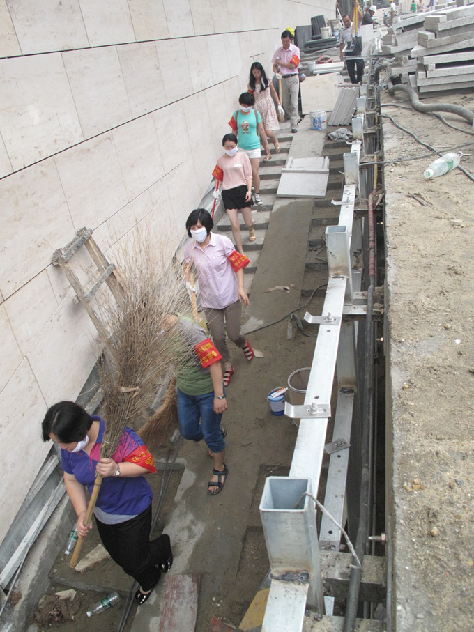 自2011年動(dòng)工,由我公司代建的南京第一個(gè)遺址性博物館--六朝博物館將于8月11日正式開館。開館后該館將成為南京市城市的標(biāo)志性建筑,也是2014年南京青奧會(huì)向國際友人呈現(xiàn)的世界歷史文化名城建設(shè)。臨近開館前夕,為保證施工場(chǎng)地形象整潔,圣和藥業(yè)自行組織了這支百名志愿者隊(duì)伍,為南京”辦好青奧盛事、創(chuàng)成率先大業(yè)、建設(shè)人文綠都“奉獻(xiàn)一份心力。