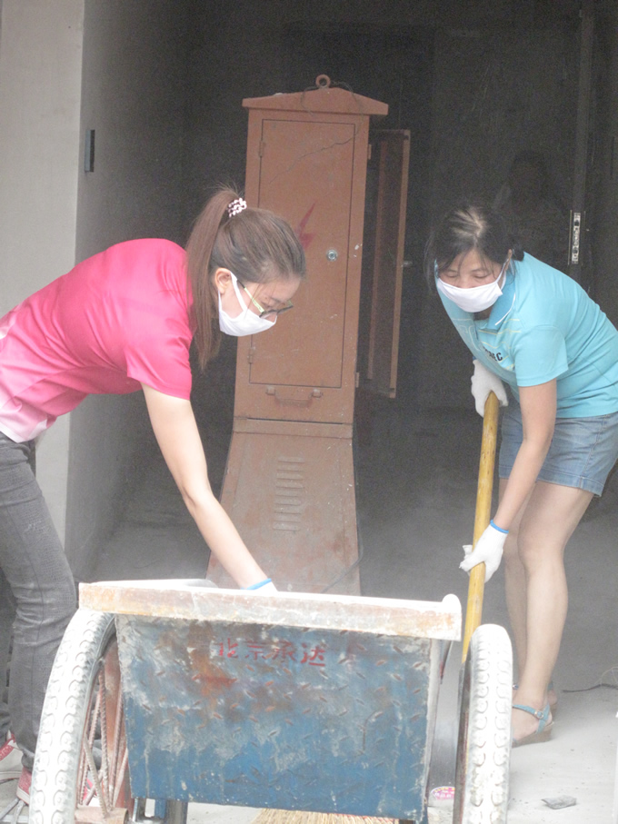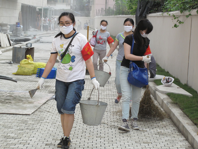 為使志愿工作井然有序、效率提升,組織方圣和置業(yè)公司將志愿者分組編隊(duì),明確了各組的勞動(dòng)任務(wù),并向每位志愿者提供了袖章、口罩、手套,以及鐵鍬、大小掃帚、小推車等勞動(dòng)工具。盡管當(dāng)天烈日當(dāng)空,現(xiàn)場(chǎng)灰塵飛揚(yáng),但志愿者們?nèi)巳藵M懷激情,干勁十足,不怕臟、不怕累,許多人不一會(huì)兒就渾身濕透,但這些毫不影響大家的勞動(dòng)熱情和干勁,因?yàn)樵谏眢w力行、揮汗如雨的激情里,圣和人體會(huì)到了為社會(huì)無私奉獻(xiàn)的快樂。為了讓下一代感受這份”愛和奉獻(xiàn)“,感受這份勞動(dòng)的光榮,更有圣和員工志愿者帶著自己的孩子一起參與這項(xiàng)工作。此情此景不僅感染著所有的志愿者,也不時(shí)受到了路人們的稱贊。