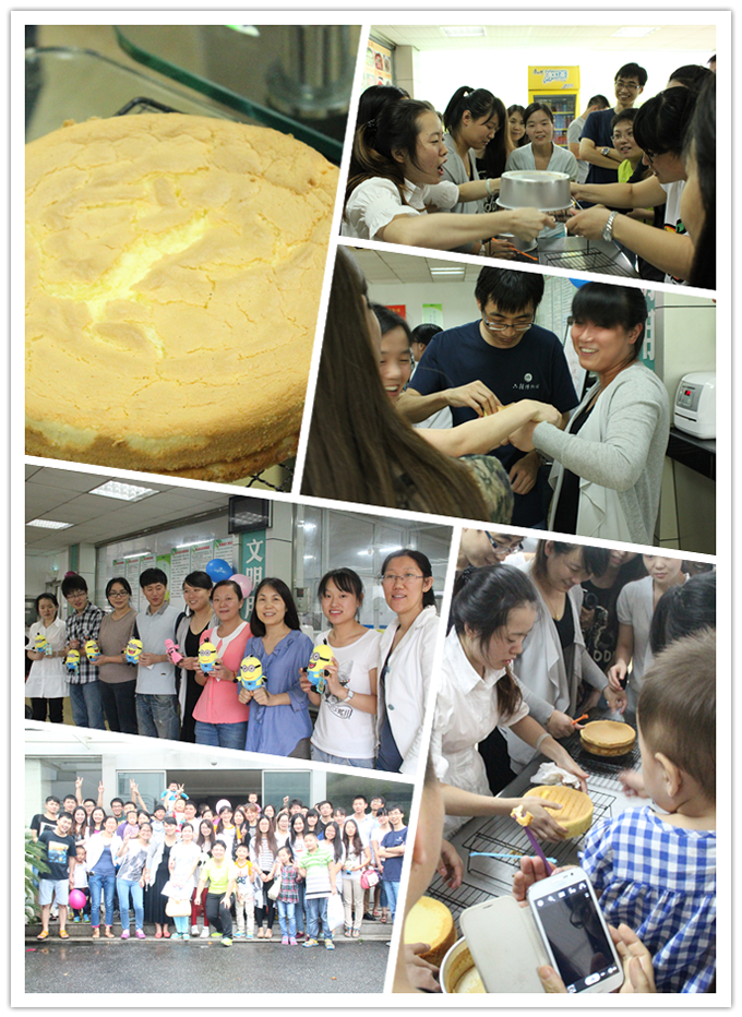 在等待烘烤的過(guò)程中,每個(gè)參賽者都既緊張又興奮。為自己第一次的烘焙成果激動(dòng)萬(wàn)分,為是否能真正成功為家人做出第一個(gè)蛋糕而擔(dān)心不已。經(jīng)過(guò)4個(gè)小時(shí)的努力,我們精心制作的DIY蛋糕終于新鮮出爐。蛋糕一出爐,降溫還沒(méi)有結(jié)束就被圍觀的吃貨們搶個(gè)精光。拿在手上雖燙,吃在嘴里卻是那么的甜蜜與滿足,看到一張張笑臉,頓時(shí)覺(jué)得原來(lái)我們可以這么的天真與不羈。就像孩子得到玩具一樣那么的開(kāi)心與自豪。DIY蛋糕比賽結(jié)束,孩子們也滿載而歸。因?yàn)榈案庹T人,出爐就遭哄搶,我們的比賽也無(wú)法評(píng)出一二三等獎(jiǎng),為了犒勞大家的辛苦努力,由李總給所有參賽者頒發(fā)禮品。最后由李總代表我們所有人員感謝蛋糕師的辛苦與指點(diǎn)。