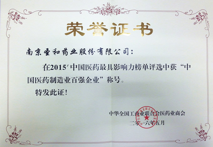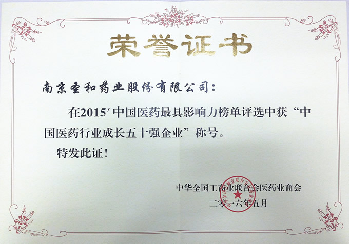 本網(wǎng)訊 2016年5月11-13日,全國(guó)工商聯(lián)醫(yī)藥業(yè)商會(huì)第三次會(huì)員(代表)大會(huì)暨 2015′中國(guó)醫(yī)藥行業(yè)最具影響力榜單發(fā)布會(huì)在重慶市麗笙世嘉酒店召開(kāi)。本次活動(dòng)由全國(guó)工商聯(lián)醫(yī)藥商會(huì)、中國(guó)醫(yī)藥報(bào)、中國(guó)院長(zhǎng)雜志社、重慶市經(jīng)濟(jì)與信息化委員會(huì)、重慶市巴南區(qū)人民政府主辦。會(huì)上揭曉了2015′中國(guó)醫(yī)藥行業(yè)最具影響力榜單,南京圣和藥業(yè)股份有限公司同時(shí)榮獲"2015中國(guó)醫(yī)藥制造業(yè)百?gòu)?qiáng)企業(yè)"和"中國(guó)醫(yī)藥制造業(yè)成長(zhǎng)五十強(qiáng)企業(yè)"兩項(xiàng)榮譽(yù)稱號(hào)。這些榮譽(yù)再一次折射出圣和藥業(yè)的品牌影響力和行業(yè)地位。